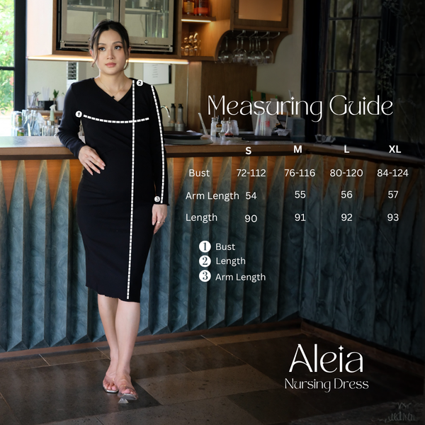 Effortlessly elegant for every trimester and beyond. This black ribbed dress features a chic cross-over neckline features an overlapping panel for easy nursing access, combining function with refined style. Crafted from soft, stretchy knit, it embraces your bump comfortably while offering a sleek silhouette.